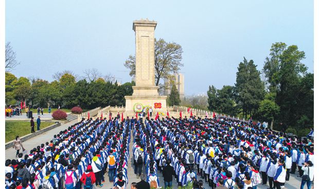 隨州網訊 3月31日,隨州市各類學校近千名師生來到隨州烈士陵園,開展“緬懷先烈,祭奠忠魂”清明祭掃活動,激勵大家不忘初心,繼承烈士之志。圖為大家在烈士紀念碑前舉行紀念儀式。 (本報記者 李文軍攝)