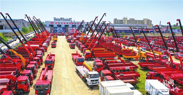 來到位于曾都區(qū)北郊的神百汽車?yán)蠌S區(qū),數(shù)百輛隨車吊舉起長長的“手臂”,紅白相間的設(shè)計是神百的“專屬”設(shè)計,十分亮眼,氣勢壯觀。