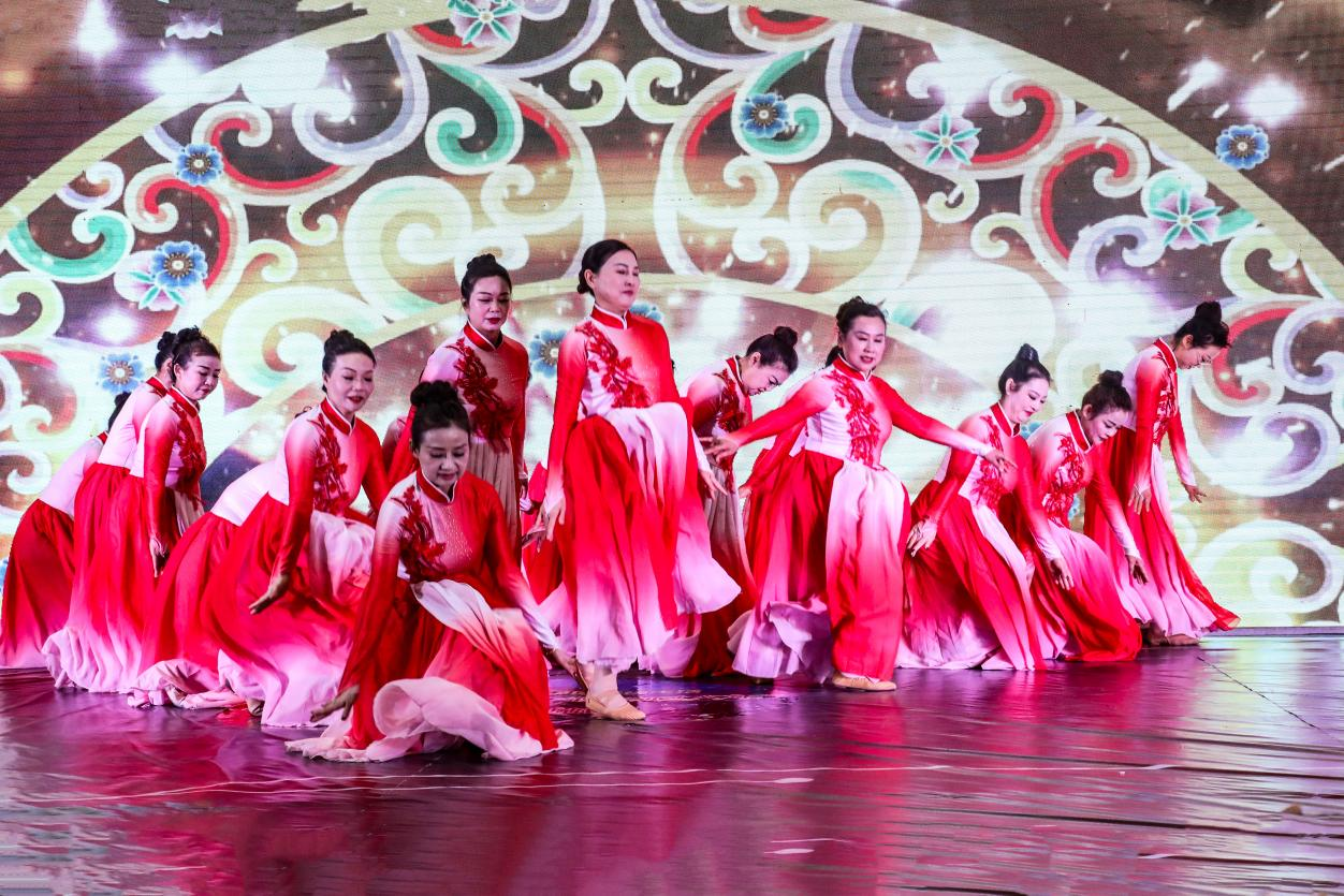 名演員載歌載舞,展現(xiàn)曾都區(qū)人民祥和、幸福、向上的精神風貌。(