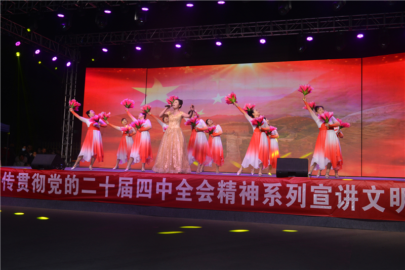 晚會在淅河鎮第一小學表演的《鼓舞中國》中拉開活動序幕,淅河鎮綜合文化服務中心舞蹈隊,舞蹈《太陽出來喜洋》,烈山社區藝術團,快板《隨州處處好風光》,淅河鎮云龍社區舞蹈隊,歌伴舞《幸福中國一起走》,淅河鎮第一小學,舞蹈《成長在祖國的懷抱里》,淅河鎮劉蓮威風鑼鼓藝術團,非遺表演《打蓮響》,淅河鎮綜合文化站銀杏藝術團,情景劇《清潔家園美如畫》,淅河鎮大廟村書記馮享國獨唱《畫你》,淅河鎮二棉社區舞蹈一隊,舞蹈《祝福你盛世中華》,淅河鎮土城村金秋舞動隊,秧歌舞《紅歌大連唱》,曾都區中醫醫院,朗誦《白衣執手,暖照新元》,淅河鎮綜合文化站舞韻藝術團,舞蹈《江山》將活動推向高潮。老街社區居民王明軒說,現在黨的政策好,我們淅河鎮經常開展大型文藝活動,送戲下鄉,送電影下鄉保障了人民群眾的文化生活,讓我們能夠欣賞高雅藝術,我們住在這里開心,這也是淅河鎮開展新時代文明實踐活動的成果展示,豐富了我們居民們的文化生活。
