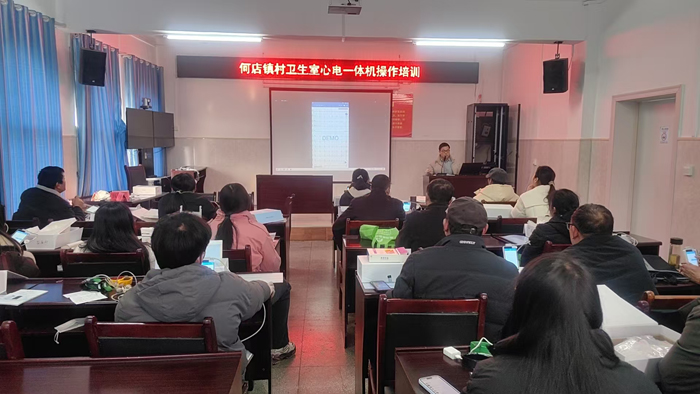 村醫賦能,貫通服務末梢。院內培訓結束后,黃雷隨即對全鎮村衛生室鄉村醫生開展集中培訓,系統講解設備操作流程、常見異常心電圖特征識別要點及危急值報告與轉診機制,并同步開展現場實操指導,確保村醫聽得懂、學得會、用得上。