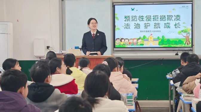 隨州新聞網訊 (通訊員李雨薇、羅鋮)近日,曾都區人民檢察院“寒冬護‘未’·檢愛同行”系列法治宣講活動第一階段圓滿結束。為在寒假前增強未成年人安全意識和自我保護能力,筑牢未成年人安全防護網,曾都區人民檢察院聯合區教育局、區婦聯等部門啟動了“寒冬護‘未’·檢愛同行”系列法治宣講活動;顒又,“鹿萱和鳴”未檢工作室法治宣講團走進轄區鄉鎮學校,用生動有趣的法治課堂,為孩子們送上一份干貨滿滿的寒假安全指南。