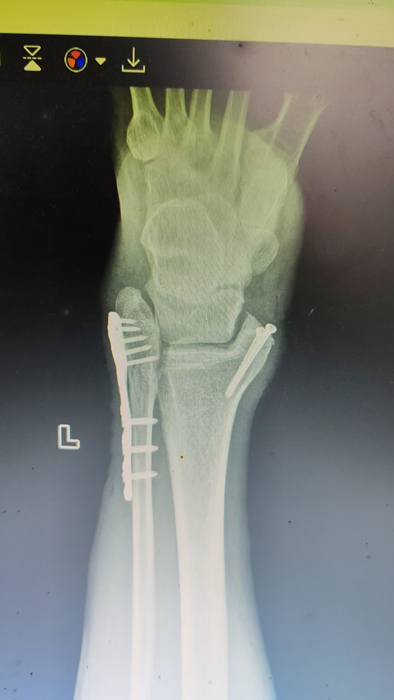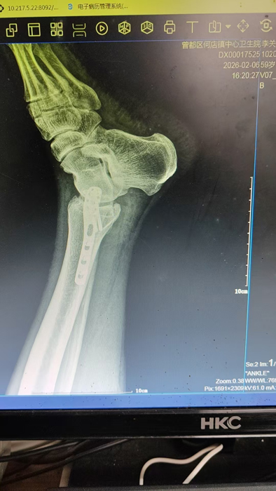 2月4日,何店鎮(zhèn)中心衛(wèi)生院接診一名左踝關(guān)節(jié)外傷患者,經(jīng)影像檢查,確診為左脛、腓骨下段骨折。外科醫(yī)生姜穩(wěn)迅速完成術(shù)前檢查及病情評估,并與患者及家屬深入溝通治療方案。在患者強烈要求于本院進行手術(shù)的情況下,為最大限度保障手術(shù)質(zhì)量與安全,該院特邀請醫(yī)共體牽頭單位——曾都區(qū)人民醫(yī)院脊柱創(chuàng)傷外科專家團隊前來指導(dǎo)。