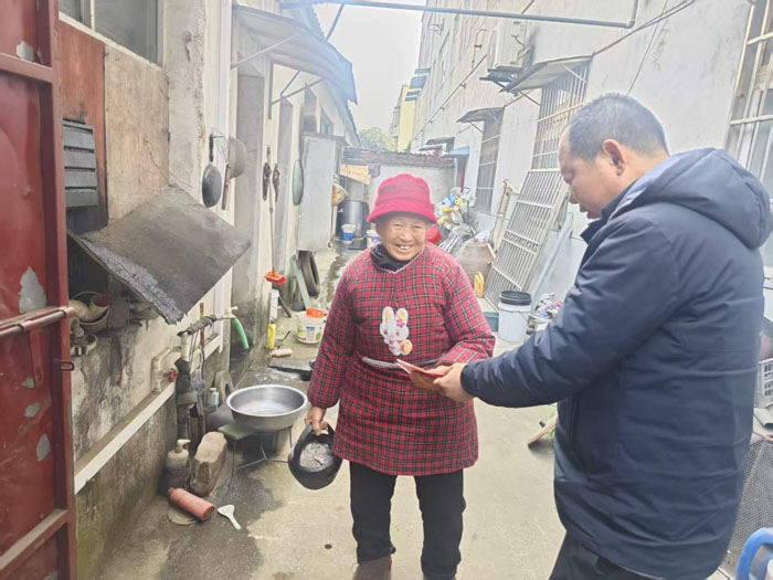 隨州新聞網(wǎng)訊(通訊員周金秋)2月10日農(nóng)歷臘月二十三,小年清晨的陽光剛剛灑進六草屋社區(qū)的街巷,空氣中已彌漫著濃濃的年味與溫情。社區(qū)黨委書記周育昌帶領(lǐng)工作人員,分頭敲響了51戶特殊困難家庭的門。這些家庭,有的成員身患重病,有的因傷殘生活不便,始終是社區(qū)黨委心中最深的牽掛。“周書記,你們又來了!”在困難群眾周銀虎家中,看到社區(qū)工作人員熟悉的面孔,因傷病長期臥床的周銀虎眼眶濕潤。他動情地說:“我家這種處境,你們年年都記得,還專門跑一趟,感恩社區(qū)黨委。”沒有冗長的客套,沒有刻板的問候,幾句掏心窩子的家常話,讓小小的房間里充滿了真情實感。這不僅僅是簡單的“送錢送物”,更是組織上情真意切的關(guān)懷,讓群眾真正感到溫暖,受到鼓舞。在每一戶,慰問小組都停留許久。他們仔細詢問:“年貨備齊沒有?”“暖氣熱不熱?”“看病報銷順不順利?”“還有哪些具體的難處?”工作人員手中的筆記本,密密麻麻記下的不是冰冷的條目,而是“李阿姨需要定期上門測血壓”、“張叔叔需要換一副新拐杖”這樣帶著溫度的生活細節(jié)。慰問,不僅要“慰”,更要“問”,往深里問,往細處想,才能真正觸碰到群眾的疾苦和需求,將關(guān)懷落到實處。