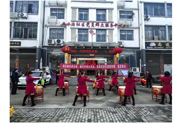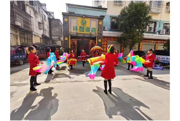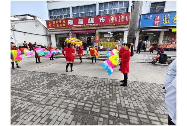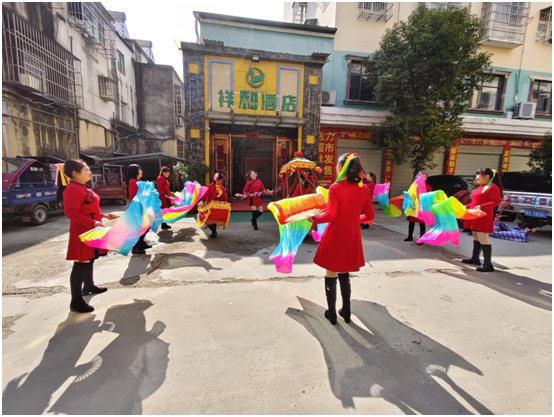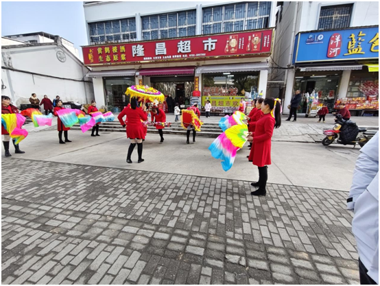 ——兩水溝社區組織舞蹈隊進商戶送祝福