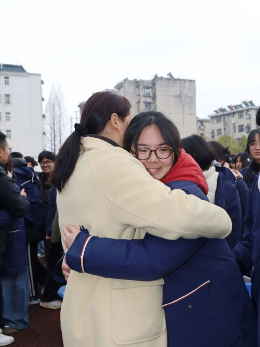 感恩環(huán)節(jié)溫情滿滿。在吳老師引導(dǎo)下,全體學(xué)子向恩師鞠躬、擁抱、擊掌,致敬師恩,現(xiàn)場暖意融融。