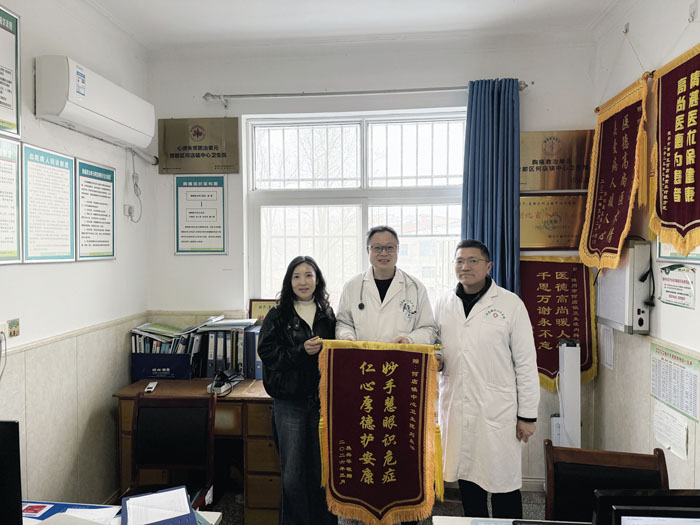 隨州新聞網(wǎng)訊 (通訊員王靜、陳勇)一面錦旗,承載兩段跨越三年的生命守護(hù)。3月20日上午,在何店鎮(zhèn)中心衛(wèi)生院內(nèi)科住院部,患者熊阿姨的家屬將一面印有“妙手慧眼識危癥,仁心厚德護(hù)安康”的錦旗,鄭重交到劉永華醫(yī)師手中。這不僅是對一次診療的認(rèn)可,更是對一名基層醫(yī)者長期默默守護(hù)的真摯回響。