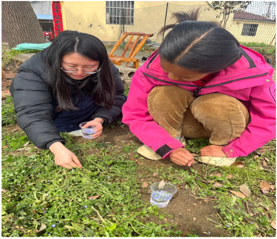 本次送教以“春天的小秘密”為主題,將課堂搬進自然、融入生活。抵達學生家中后,老師們帶領孩子走出戶外,在田野間尋找春天、觸摸春天、感受春天:看新芽破土、聽春風輕語、聞花草清香,讓孩子在真實情境里感知季節之美。