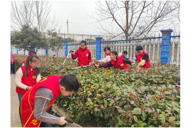 在實踐踐行環節,全校師生積極參與學雷鋒實踐活動及校園清掃志愿服務,分工協作、細致盡責,用雙手美化校園環境,在親身勞動中深刻體會到,奉獻精神就蘊藏于日常點滴行動之中,以實際行動踐行雷鋒同志無私奉獻、愛護集體的精神。3月12日,師生志愿者攜手參與翻地除草的植樹節活動,在勞動中體驗奉獻價值,培育生態環保理念,讓學生真切感受到服務他人、美化校園所帶來的充實與自豪。3月20日,以世界水日為契機,各班開展主題班會,引導學生以實際行動節約用水。每一項活動都立足新教育“生活化教育”要求,讓學生在志愿服務中錘煉品格、增強責任。