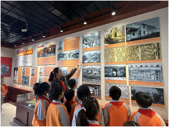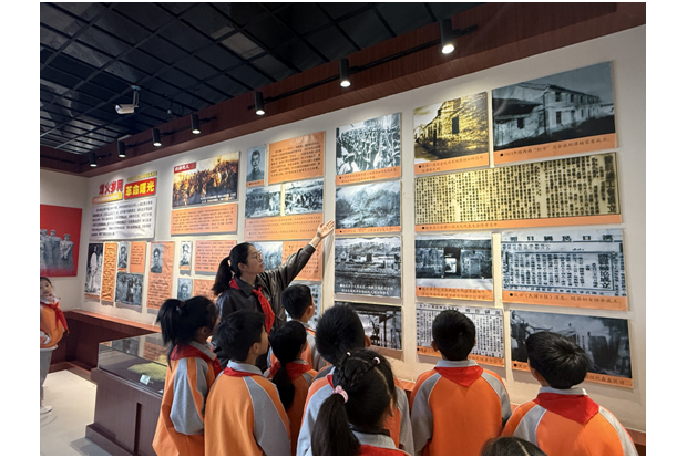 紅色研學(xué) 浸潤初心。祭奠儀式結(jié)束后,全體師生前往隨州革命烈士陳列館開展紅色研學(xué)。五眼橋小學(xué)黨支部書記蔣超,清河路小學(xué)黨支部書記諶江波與全體師生一同駐足觀展、認真聆聽,在歷史與現(xiàn)實的交匯中接受深刻的精神洗禮。