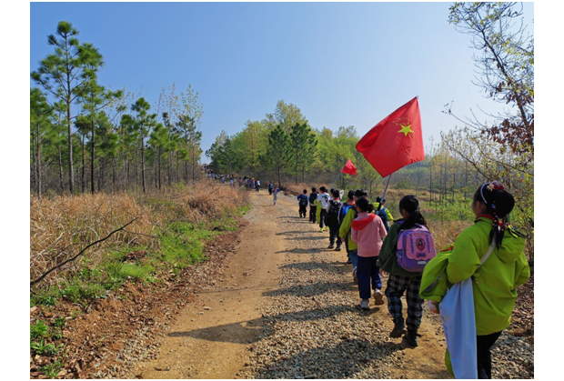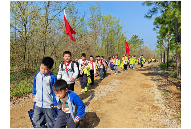 隨州新聞網(wǎng)訊 (通訊員曾理)4月1日,天河口小學(xué)組織三四年級全體師生開展清明祭掃烈士公墓主題教育活動,前往隨縣殷店鎮(zhèn)元寶山革命烈士陵園緬懷先烈。清晨師生身著統(tǒng)一服裝在操場集合,隨后踏上往返14公里的山路,行進(jìn)中教師全程保駕護(hù)航,師生互幫互助,還齊唱紅色歌曲,歷經(jīng)兩小時順利抵達(dá)陵園。