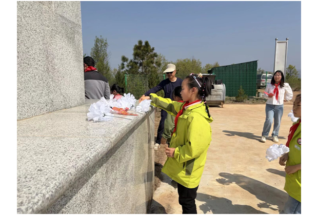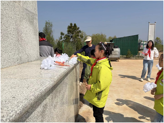 在烈士紀(jì)念碑廣場,祭掃儀式莊重開展,教師代表講述了元寶山本地從抗戰(zhàn)到解放戰(zhàn)爭的紅色歷史與先烈事跡,學(xué)校領(lǐng)導(dǎo)致辭緬懷先烈并號召師生傳承紅色精神,全體少先隊員在大隊長帶領(lǐng)下重溫入隊誓詞,之后師生有序向紀(jì)念碑敬獻(xiàn)小白花、鞠躬瞻仰。