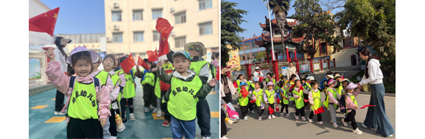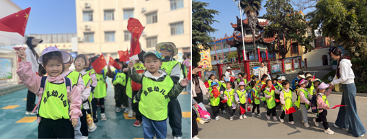 活動當天,陽光明媚,微風和煦。孩子們早早來到幼兒園,身著輕便的衣物,背著裝滿小零食的書包,臉上洋溢著期待與興奮的笑容,整齊列隊出發。一路上,孩子們歡聲笑語不斷,好奇地觀察著路邊綻放的花朵、抽芽的柳枝,嘰嘰喳喳地分享著自己發現的春日小秘密,稚嫩的童聲為春日的旅途增添了別樣的生機。