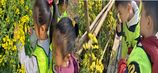 抵達春游目的地后,老師們精心組織了一系列豐富多彩的活動。在自然探索環節,孩子們化身小小探險家,在草地上、花叢間漫步,觸摸柔軟的青草,辨認五顏六色的花朵,聆聽小鳥清脆的鳴叫,用心感受春天的每一處美好。老師們耐心地為孩子們講解植物的生長知識,引導他們觀察春天的特征,讓孩子們在輕松愉快的氛圍中親近自然、認識自然。