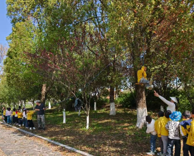 熱身結束,趣味團隊互動游戲正式開啟。教官精心設計升降游戲,著重鍛煉孩子們的團隊協作能力。游戲中,孩子們聽從指令、相互配合、彼此鼓勵,齊心協力完成挑戰,小小身軀迸發著團結力量。歡聲笑語里,孩子們盡享游戲樂趣,更深刻理解團結協作的意義,規則意識與集體榮譽感也在潛移默化中得到培養。