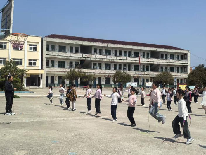 校園里沒有繁重的課業負擔,取而代之的是彩色跳繩與孩子們的歡聲笑語。老師帶領學生做好熱身運動,耐心示范并腳跳、單腳交換跳等基礎動作,逐一指導糾正。同學們認真練習、積極參與,從生疏到熟練,在跳躍中鍛煉協調性與耐力。