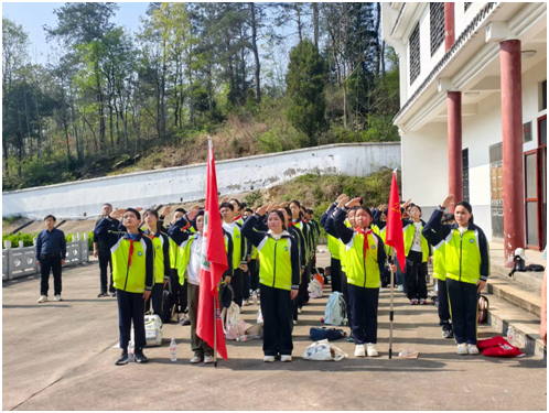 9時40分,師生代表抵達故居后,莊嚴(yán)的升國旗儀式正式開始。全體師生肅立注目,高唱國歌,鮮艷的五星紅旗冉冉升起,崇高的敬意與濃濃的愛國之情在每個人心中升騰。