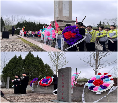 4月3日上午,鎮中心學校組織六、七年級師生及校團委成員,前往三里崗鎮革命烈士陵園,開展“清風寄思念,美德承清明”主題祭掃活動,以莊嚴儀式緬懷革命先烈,用英雄事跡砥礪青春擔當。活動伊始,全體肅立,向革命先烈敬獻花圈、奏《獻花曲》,在肅穆的氛圍中默哀追思,向為民族解放事業英勇獻身的英雄們致以最崇高的敬意。隨后,紅色經典朗誦《我們不會忘記》聲聲鏗鏘,道出了新時代少年對英烈的深切緬懷;三里崗鎮黨群服務中心羅可啟書記現場為師生們深情講述了陵園內安葬的趙基梅、華夫、吳江秋、劉天聰、張指導員等革命先烈的英雄事跡:從率部挺進大別山、積勞成疾病逝的趙基梅司令員,到受盡酷刑、英勇就義的“劉胡蘭式女英雄”吳江秋,再到與敵人殊死搏斗、壯烈犧牲的無名英雄,每一段事跡都震撼人心,每一個名字都熠熠生輝,讓師生們深刻感悟到革命先烈舍生取義、為國捐軀的崇高精神。