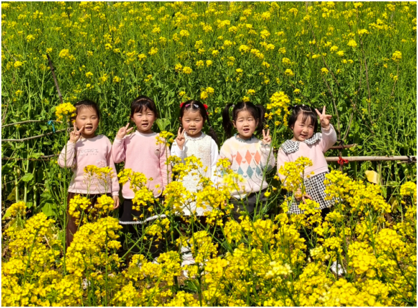 課堂學習結束后,各班級結合幼兒的年齡特點開展特色實踐活動。部分班級帶領孩子們走進戶外的油菜花田,在金黃爛漫的花海中觀察花草、觸摸自然、親近春光,真切感受清明時節的生機與美好,用腳步丈量春天,用童心捕捉節氣的獨特韻味。另一部分班級則在教室內開展創意手工活動,孩子們用超輕黏土制作仿真青團,用野花、枝葉拼貼創意作品,在動手創作中沉浸式體驗清明習俗,將春日的美好與節日的記憶定格在一件件充滿童趣的作品里。