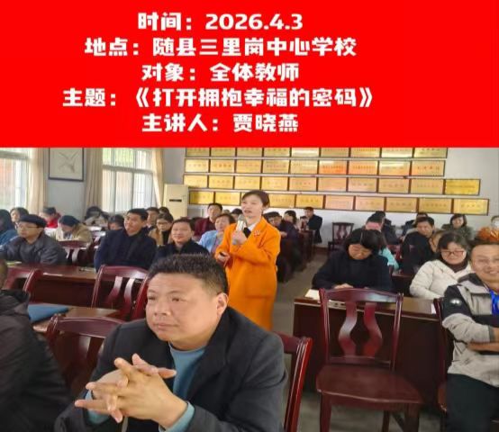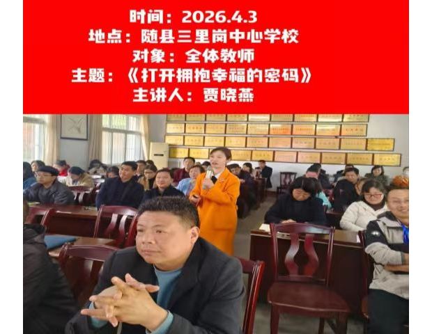 隨州新聞網(wǎng)訊 (通訊員孛濤)為精準破解鄉(xiāng)村學校教師職業(yè)倦怠、學生厭學兩大突出難題,搭建家校社協(xié)同育人的心理支持體系,切實關(guān)愛師生心理健康,4月3日,由隨州市教育科學研究院、隨縣教研室、隨州市隨心志愿服務隊主辦,隨縣三里崗鎮(zhèn)中心學校承辦的心理健康調(diào)研專項活動,在三里崗鎮(zhèn)中心學校順利舉行。活動以“關(guān)愛師生心理健康 破解倦怠厭學難題 協(xié)同護航成長之路”為主題,全天有序開展專題輔導、問卷調(diào)研、一對一咨詢等多項內(nèi)容,學校領(lǐng)導、班主任、教師代表、家長代表及學生代表全程參與,共同為鄉(xiāng)村師生心理健康保駕護航。