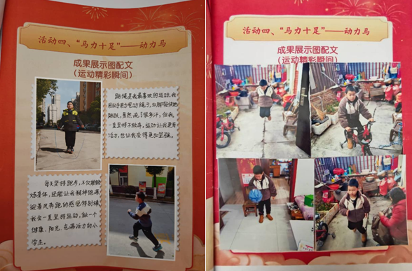 學校以視頻展示的方式,分板塊精彩呈現實踐成果:“規劃馬”板塊生動展示了學生制定的寒假時間表及學習、運動與生活目標;“智慧馬”展區中,好詞好句的積累工整規范,彰顯智慧火花;“動力馬”以圖文并茂的形式記錄跳繩、跑步等運動瞬間,充滿蓬勃朝氣;“勤勞馬”通過家務打卡表,涵蓋疊被、洗碗、整理房間等日常勞動,體現辛勤付出;“傳承馬”則展示了學生抄寫的春聯,以及包餃子、學做年節美食等傳統文化體驗,濃郁傳承韻味。