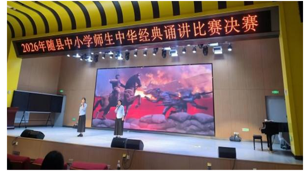 隨州新聞網(wǎng)訊(通訊員后勇)4月8日,由隨縣縣委宣傳部、隨縣教育局、隨縣圖書(shū)館主辦,隨縣實(shí)驗(yàn)小學(xué)承辦的隨縣中小學(xué)師生中華經(jīng)典誦講比賽決賽落下帷幕。來(lái)自全縣24所學(xué)校的50個(gè)節(jié)目分別參與了“經(jīng)典誦讀”和“詩(shī)詞講解”兩個(gè)項(xiàng)目的角逐,最終,《木蘭辭》等15個(gè)節(jié)目脫穎而出,進(jìn)入市級(jí)決賽。