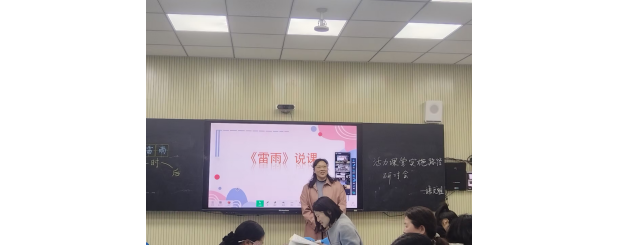 隨后的說課環節,梁紅深入闡述設計思路,強調以任務群整體構建教學體系,注重小組合作互學共進,并將生活實踐與科普知識有機融入《雷雨》教學。她對 “活力課堂” 的理解引發共鳴 —— 即打造全員參與、學生學有所獲的課堂,讓知識在互動中 “活化”,讓學生在體驗中成長。