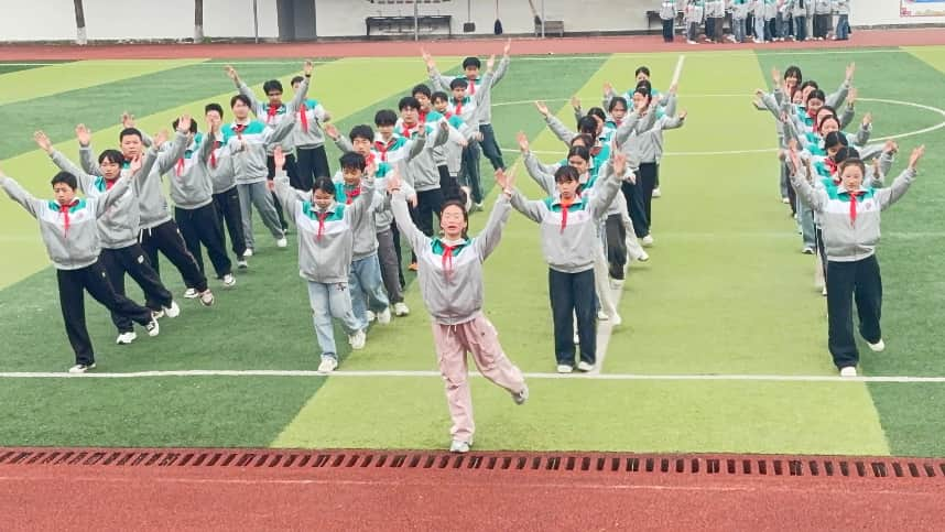 比賽現場,全校全體師生齊聚操場。各班級代表隊身著統一校服、佩戴紅領巾,精神抖擻、隊列整齊。隨著音樂響起,同學們動作舒展規范、整齊劃一,每一個動作都彰顯著青春活力與團隊默契,充分展現了日常訓練的扎實成果與班級凝聚力,贏得了現場師生的陣陣掌聲。