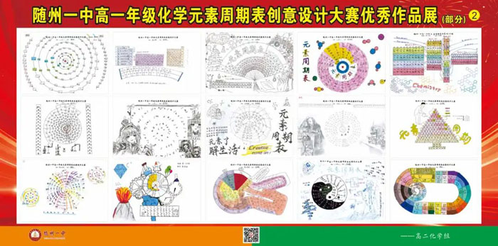 隨州新聞網訊 (通訊員張瀚月)為鞏固元素周期表知識,激發學生化學學習興趣,培養創新思維與審美能力,豐富校園文化生活,近日,隨州一中高一化學組精心策劃并開展了以“繪元素之美,探化學之奇”為主題的元素周期表創意設計大賽。