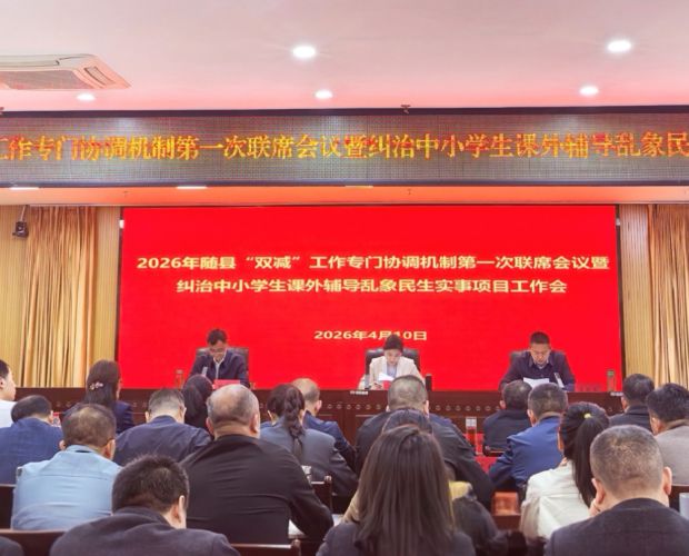 隨州新聞網訊 (通訊員胡云云)4月10日,隨縣召開2026年“雙減”工作專門協調機制第一次聯席會議暨糾治中小學生課外輔導亂象民生實事項目工作會議,深入貫徹落實省、市關于群眾身邊不正之風和腐敗問題專項整治工作部署,進一步壓實監管責任、細化工作舉措。