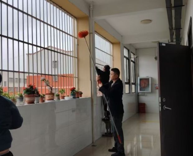 此次大掃除實行全域覆蓋、無死角清理,全校師生分工協作、各司其職,以教學樓為核心,對教室、教師辦公室、校園走廊、操場、綠化帶及各類衛生盲區開展全面整治。活動中,大家手持清潔工具,認真擦拭門窗桌椅,讓課桌椅、玻璃窗重煥潔凈光澤;細致清掃地面垃圾、清理角落積塵,徹底消除衛生隱患;精心整理教學用品、學習文具,讓校園各處擺放井然有序;俯身拔除綠化帶雜草,呵護校園綠植生機。