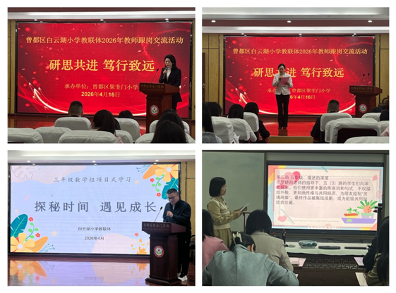 活動現場,白云湖小學教師帶來數學、英語學科項目式交流分享,隨后分別展示了五年級數學、四年級英語示范課;聚奎門小學教師同步呈現六年級數學、五年級英語觀摩課,為參會教師提供了多元的教學實踐參考。