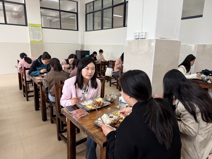 午餐時間,家長代表們來到食堂,體驗校園打餐、就餐流程,感受學校細致的飲食保障與貼心照料。