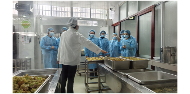 活動現場,家長代表在工作人員引導下,實地參觀食堂食材儲存、清洗加工、烹飪制作、餐具消毒、食品留樣等全流程操作,近距離查看后廚衛生環境、從業人員操作規范。在食堂數字管理平臺前,家長們詳細了解食材溯源、庫存管理、菜品配比、衛生巡檢等數字化監管流程,通過實時監控畫面,全面掌握食堂運營每一個細節,真切感受校園食堂標準化、精細化管理模式。