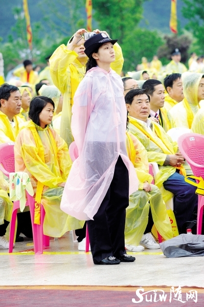 ◆雨中,拜祖方陣與警花。