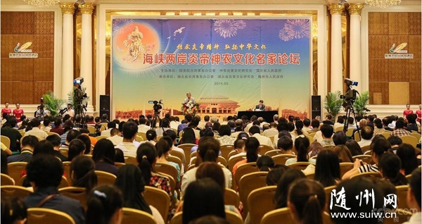 5月24日下午,海峽兩岸炎帝神農文化名家論壇于湖北隨州隆重舉行。該論壇是甲午年世界華人炎帝故里尋根節的重要活動之一,主題是“傳承炎帝精神,弘揚中華文化”。圖為文化論壇現場。 (圖片央視網記者 鐘致睿)